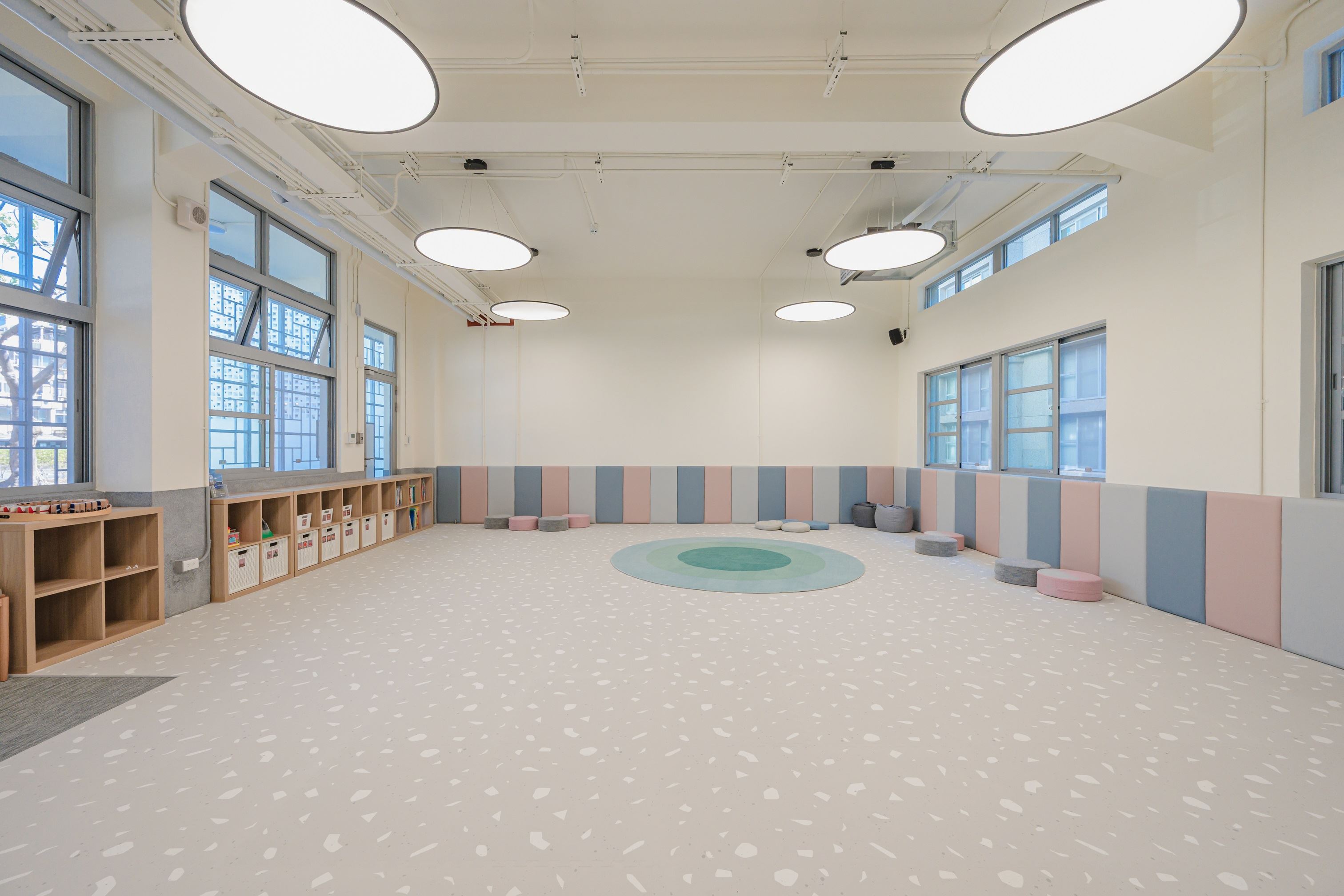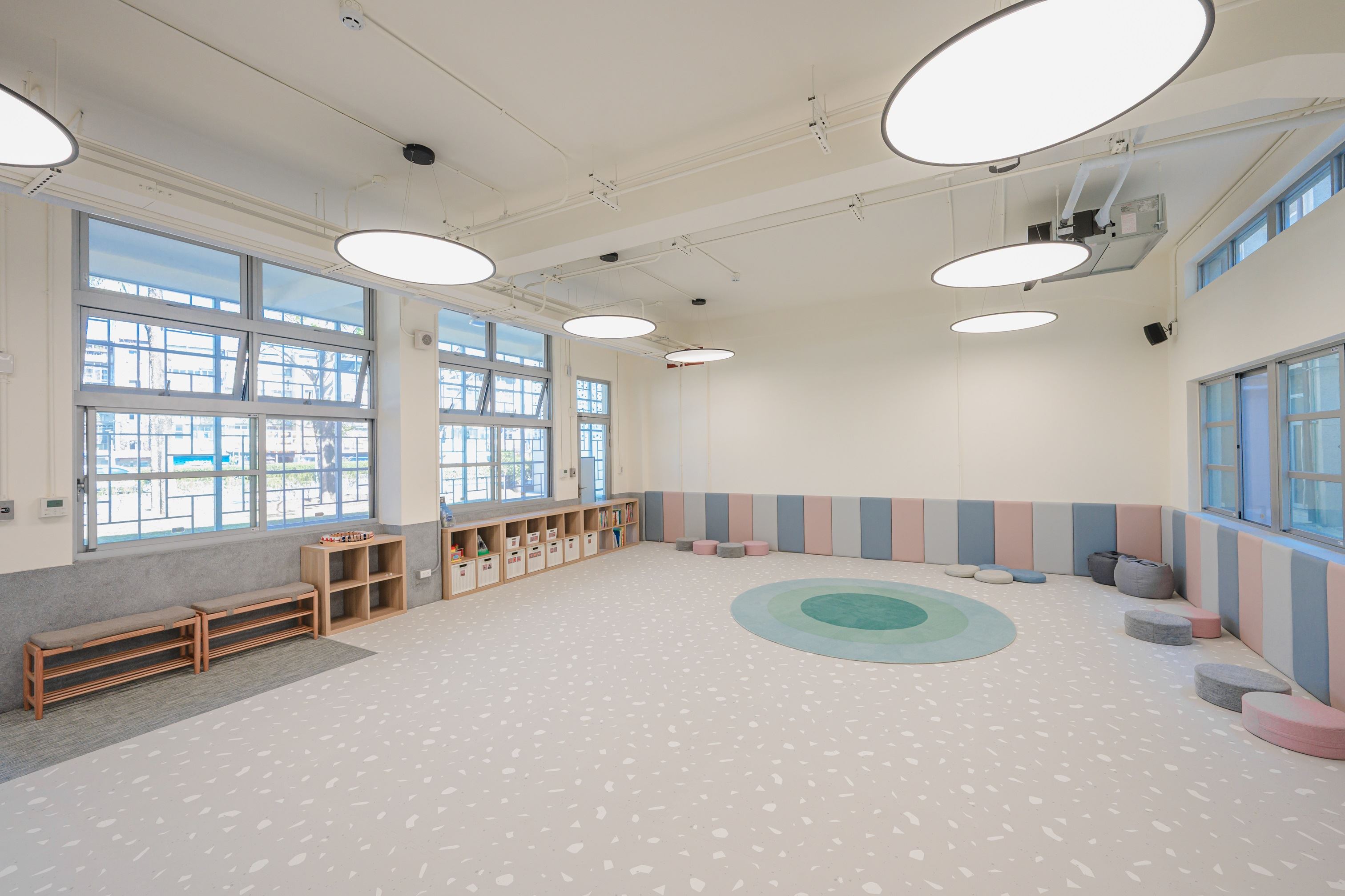 - 為維護環境衛生及遊戲安全,進入101教室巧拼地板,成年照顧者請脫鞋著襪,幼兒請脫鞋,並置放於穿鞋椅下方排放整齊。